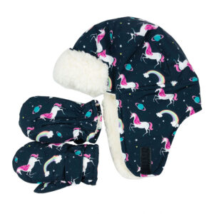【Fun and Fashionable】The kids hat features a hook and loop chin strap that is easy to apply and allows for a secure fit on your child’s head whether playing outside or bundled up in a stroller. Mittens are also warm and compact, lightweight to wear, hands can be moved inside the glove at will, and the wrist has a hook and loop design, which can help to adjust the tightness, making the gloves not easy to fall off.